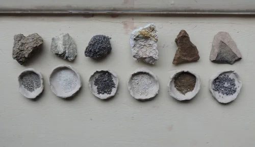 Raw Clay Tests: from left to right: Sheridan, WY; Ft. Bragg, CA; Crescent City, CA; Comptche, CA; Mendocino, CA